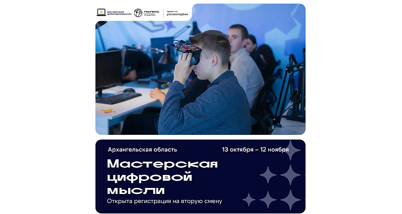 С 13 октября по 12 ноября в Архангельской области пройдет масштабная образовательная программа «Мастерская цифровой мысли», в которой примут участие порядка 1000 молодых людей: школьники, студенты и начинающие специалисты в возрасте от 14 до 35 лет из Архангельска, Северодвинска, Котласа, Няндомы, Коряжмы, Вельска, Ленского района и других муниципалитетов.