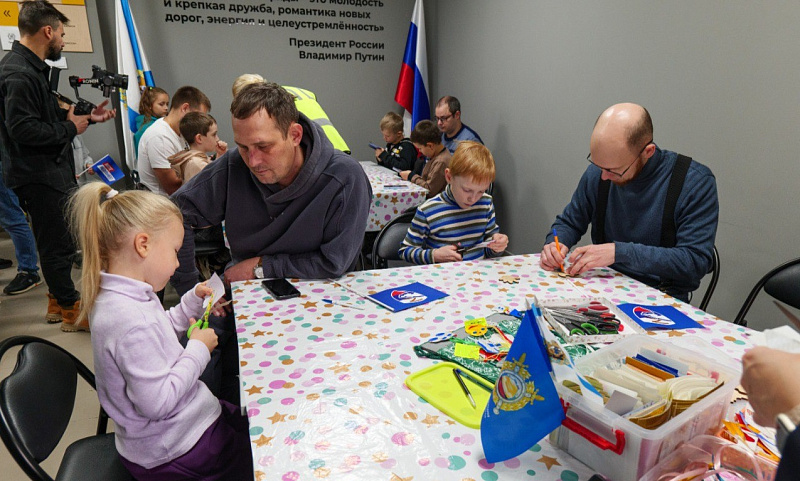 Отдельное внимание было уделено поддержке участников СВО. Все желающие смогли написать письма бойцам, передать тёплые вещи и медикаменты.