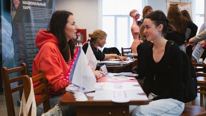 Молодежная площадка работала и на ярмарке вакансий в САФУ имени М.В. Ломоносова. Участникам рассказали о возможности пройти стажировку в органах власти в рамках программы «ГосСтарт», а также о проектах, направленных на развитие надпрофессиональных навыков и компетенций.