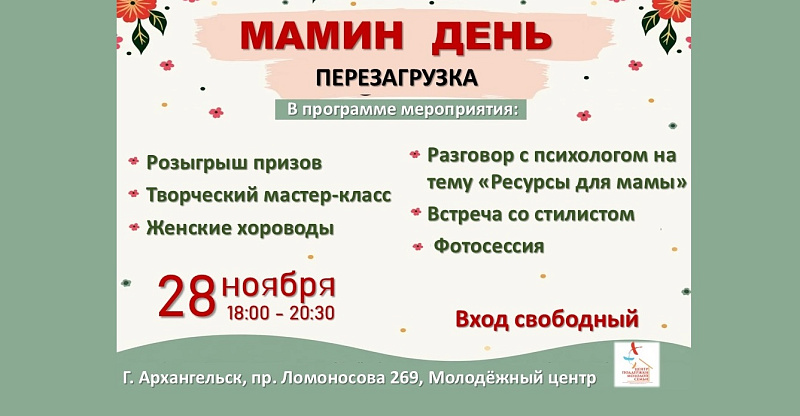 «Мамин день» соберет в областном молодежном центре семьи Поморья