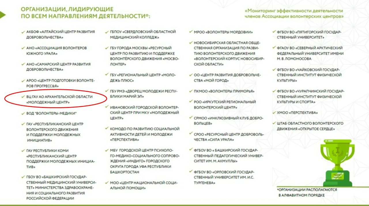 Ассоциация волонтерских центров подвела итоги эффективности деятельности за период с января по июнь 2018 года, согласно которому ГАУ АО «Молодежный центр» находится в лидерах ПО ВСЕМ НАПРАВЛЕНИЯМ ДЕЯТЕЛЬНОСТИ!